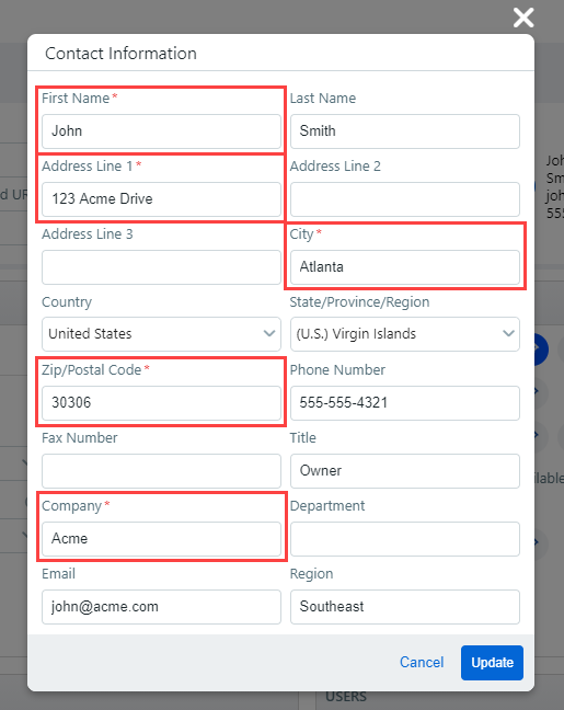 The Company Header is where you edit your company information. It is divided into four sections (Company Logo, Company URL, Contact Information, and Location).
