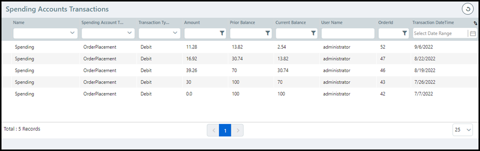 The Spending Accounts Transactions page is a one-stop resource for Spending Account history where administrators can view important details and balance information for each of their Spending Accounts.