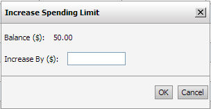 ● In the Increase By: field, enter the amount by which to increase the spending limit on the account. This increase the base amount of the spending account's spending limit.