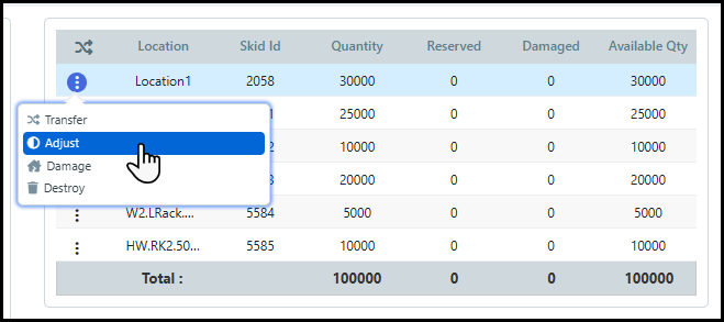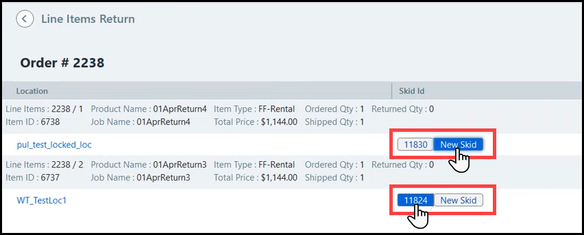 5 Select to either return the item(s) to the original Skid or a new Skid.