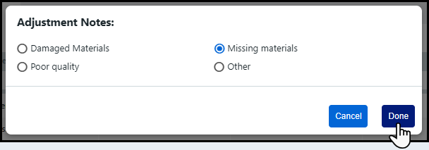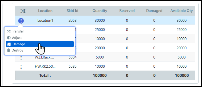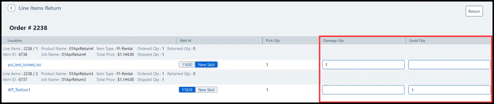 6 Enter the Damage Quantity and / or Good Quantity into the table to determine the number of damaged items to dispose and the number of good items to return to inventory.
