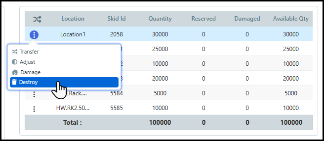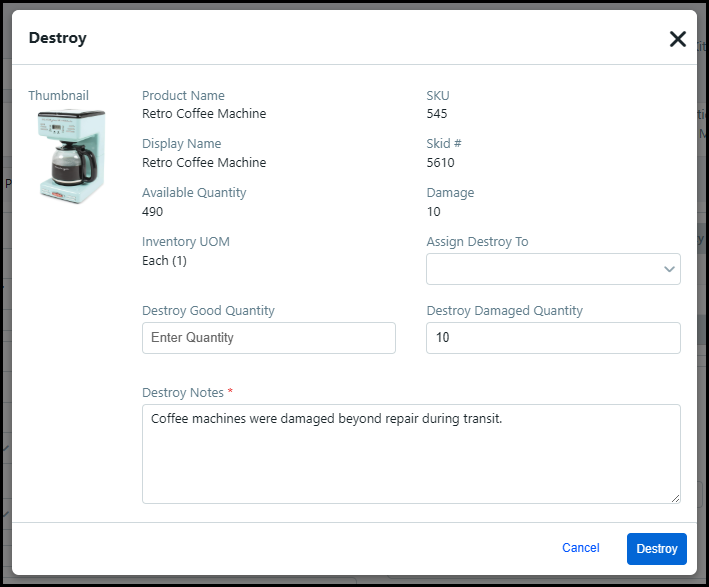 ● Inventory Destroy Receipt
