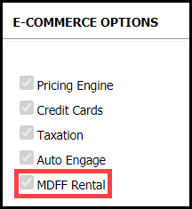 ● Scroll down to the E-COMMERCE OPTIONS section and verify that the MDFF Rental option is selected.