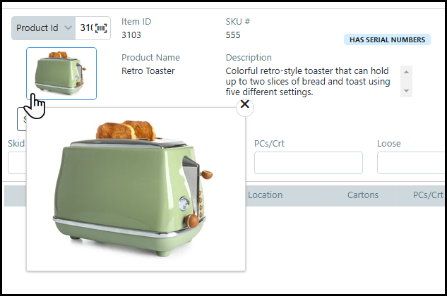 2 Enter the Order # or the Pick ID of the returned order into the appropriate field.