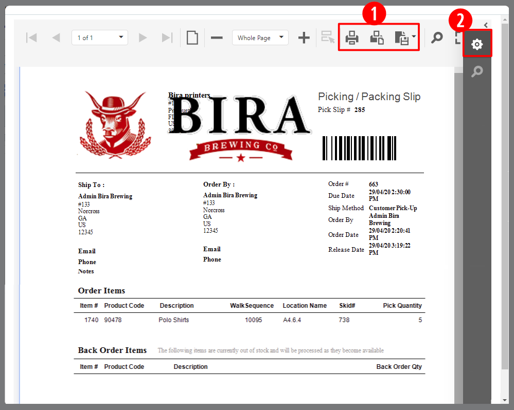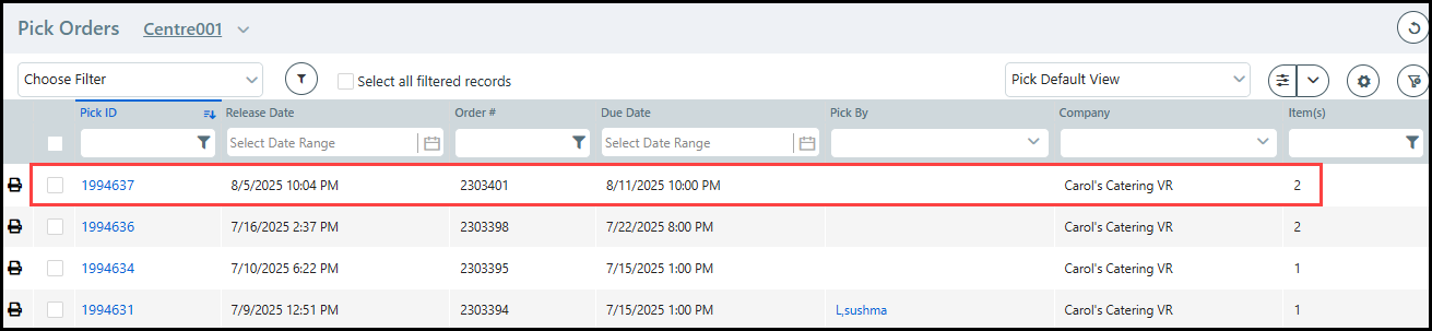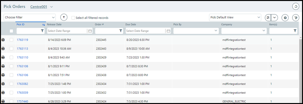 If you do not select a Pick Slip for the company, then the default PickSlip report will be generated.