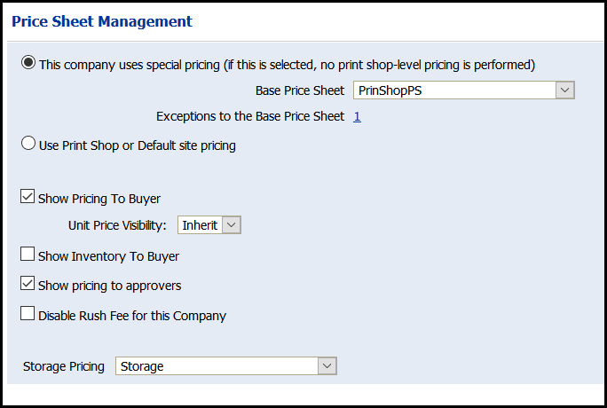 a Company price sheet has been configured.