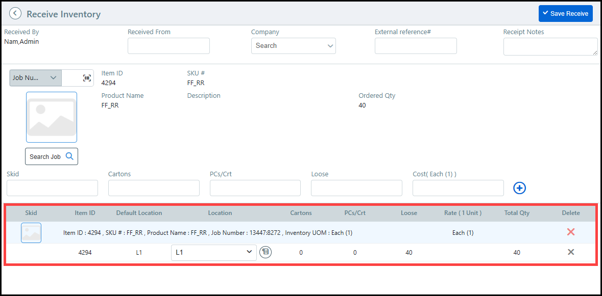 ● Inventory Receipt