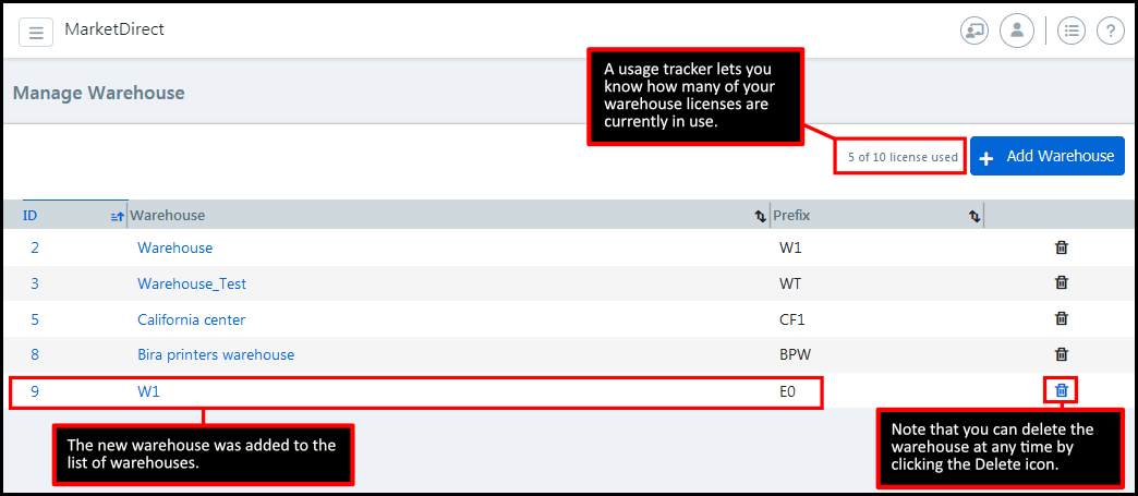 2 On the Manage Warehouse page, click Add Warehouse.