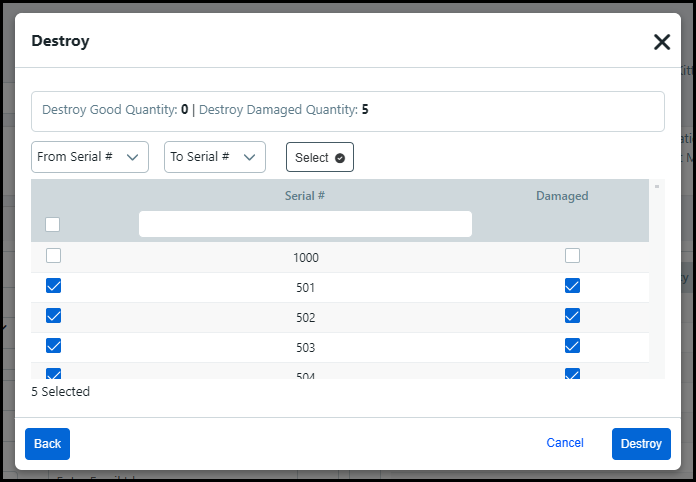 3 Complete the From Serial # and To Serial # fields to select a range of serial numbers.