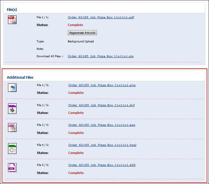 ● Job Files: Files generated by MarketDirect StoreFront during job production.