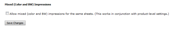 ● If enabled, the Mixed Impressions field will be shown on the Products | Settings page that you can activate to allow mixed impression mode printing for a product.