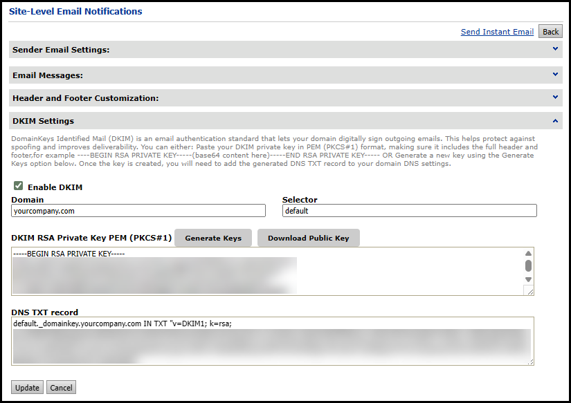 Configure DKIM Settings