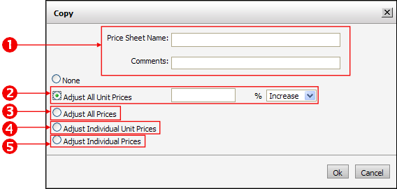 2 On the Copy dialog, assign the price sheet a name and apply price adjustments.