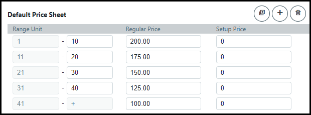 ● Click Add Range to add a new range unit to the price sheet.