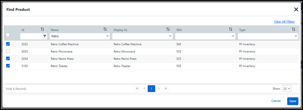 To remove the product from a storefront or category, de-select them and click Save.