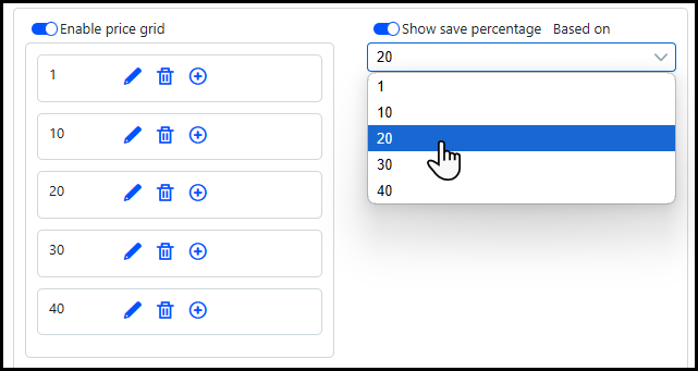 ● Order Quantities: Specify the quantities of the product buyers can order: