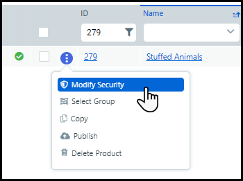 can access the security settings page from the Manage Products