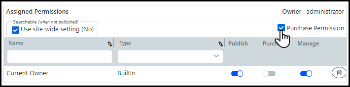 2 Click Purchase Permissions in the Assigned Permissions section to enable the Purchase setting.