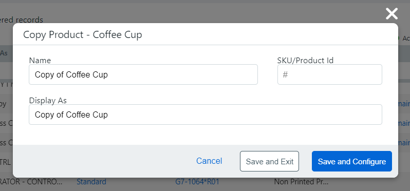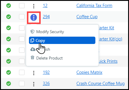 3 Choose Copy to open the Copy Product window.
