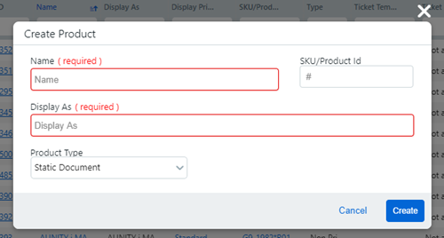 Products page to open the Create Product window.