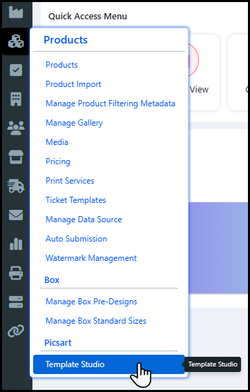 2 Hover on the Quick Access menu for the product you want to copy.