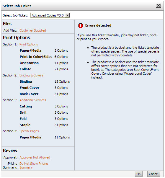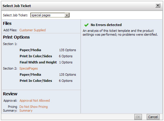 This will open the product. These ticket overrides, once saved, will serve as a prototype job for the product that will open when buyers click Begin for the product on the storefront.