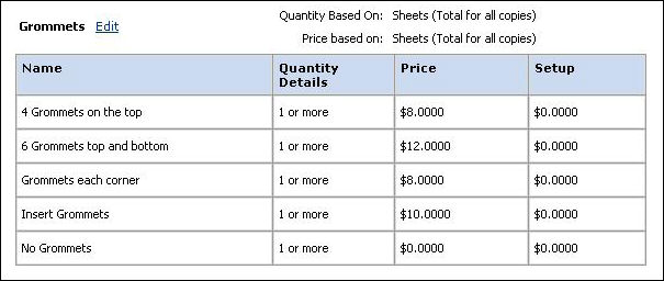 print services such as grommets, you will typically base pricing on