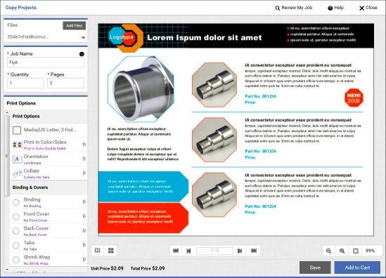 MarketDirect StoreFront does not support duplex printing for large format (wide format) products.