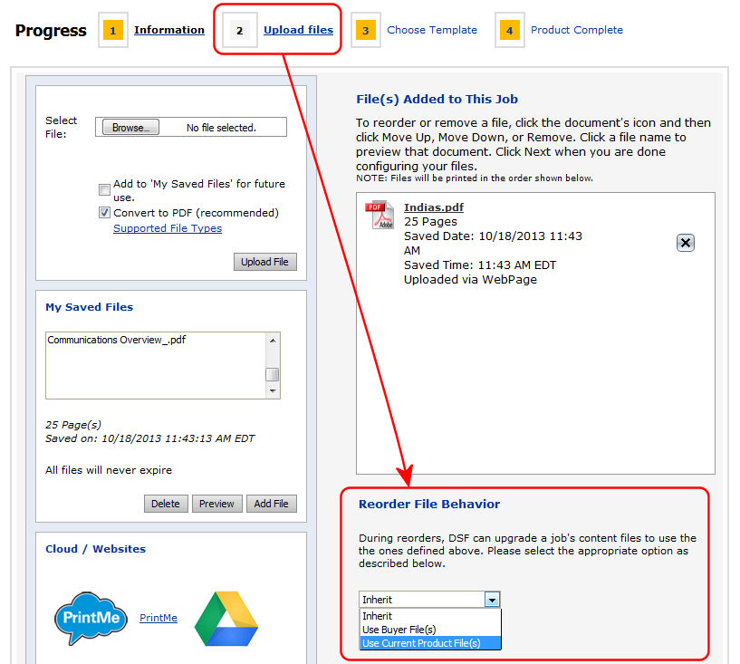 to a static document product will create a versioned saved job. If