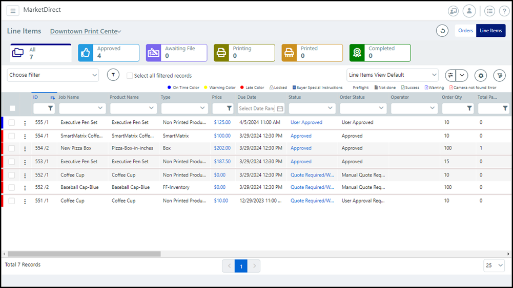 ● in-line editing tools to assign operator, output device, and operator notes for each job line item
