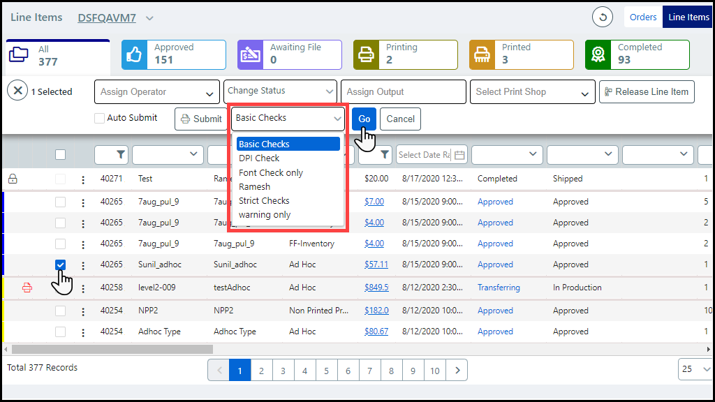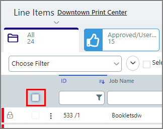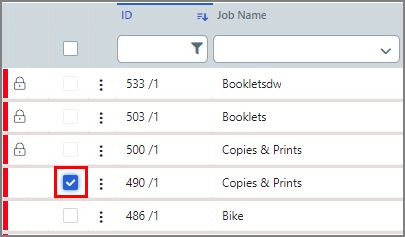 2 Select a job by clicking the Line Item box.