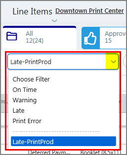 Indicates the line item is at risk of being late. The time variable for "at risk" can be set by the administrator. |