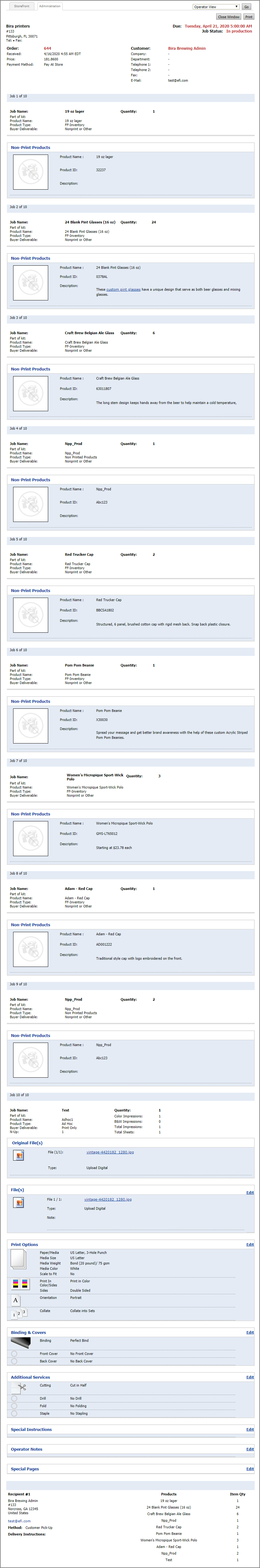 job specifications in the Operator ViewAt times, it may be necessary to view/edit job ticket options (e.g., if the customer contacts the location and requests a change to an order or if a certain type of must be substituted for one on the original product template to produce the order).